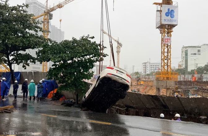 “Công nhân bị xe đè lên chân, không tự thoát ra được. Xe cẩu của công trình đã được điều đến nâng phương tiện, giải cứu nạn nhân”, một người dân sống gần hiện trường chia sẻ với VnExpress. Theo nhân chứng, khi cẩu xe lên, mặt đường tiếp tục sụt nhẹ nhưng không gây thêm thiệt hại.