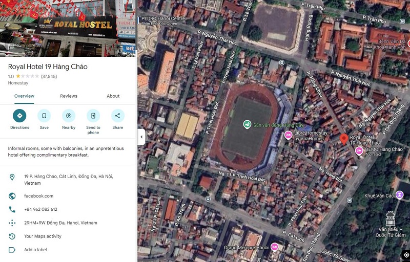 Sự việc được xác định xảy ra tại khách sạn Royal, số 19 Hàng Cháo (Hà Nội). Đại diện khách sạn – chị H. – cho biết đây là một “sự cố đáng tiếc” và thừa nhận lỗi thuộc về phía cơ sở lưu trú.