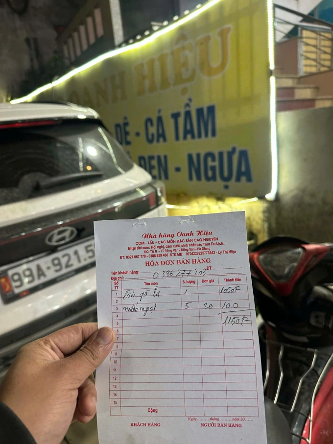 Anh Nguyễn Đức Thắng, sống tại Hà Nội, chọn Hà Giang trong kỳ nghỉ Tết Dương lịch. Tối 1/1, khi tới Đồng Văn, anh cùng nhóm bạn vào nhà hàng Oanh Hiệu ăn lẩu gà – món được giới thiệu là đặc sản địa phương. Theo anh Thắng, nồi lẩu được mang ra có lượng thịt gà ít không tương xứng với mức giá 1,2 triệu đồng.