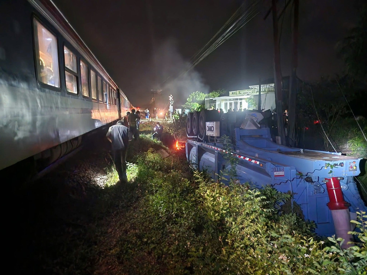 Vụ tai tai nạn đường sắt nghiêm trọng khiến tàu SE8 và xe đầu kéo hư hại, 2 người bị thương.