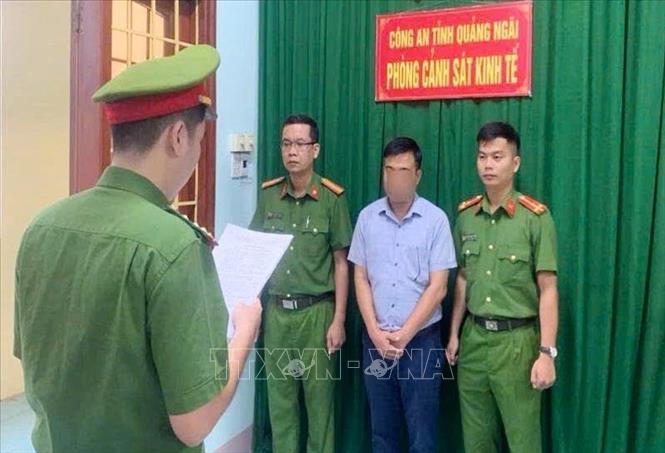 Lực lượng chức năng đọc quyết định khởi tố bị can đối với ông T.Đ.H. Ảnh: TTXVN phát