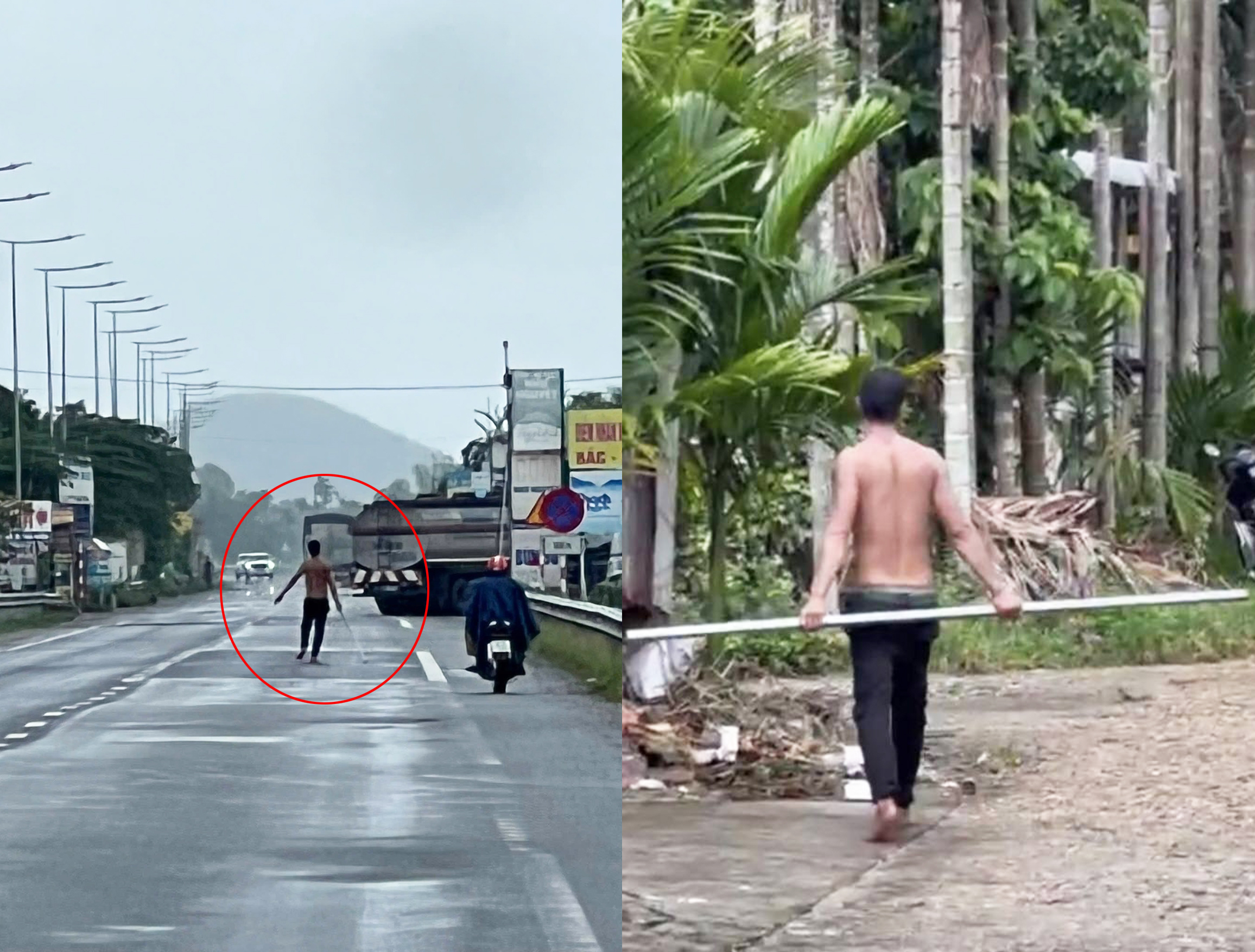 K. mang thanh sắt 2m ra tỉnh lộ la hét khiến người đi đường bất an, lo sợ