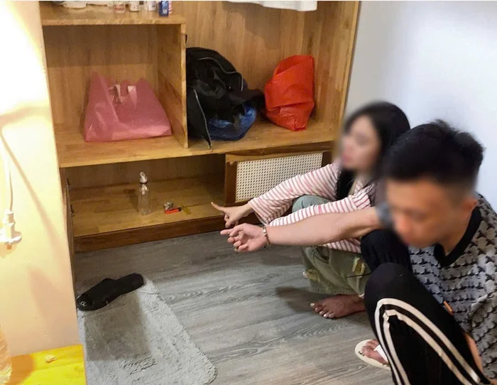 Qua kiểm tra 2 phòng nghỉ, lực lượng chức năng đã phát hiện hành vi vi phạm pháp luật của nhóm nam nữ thanh niên.