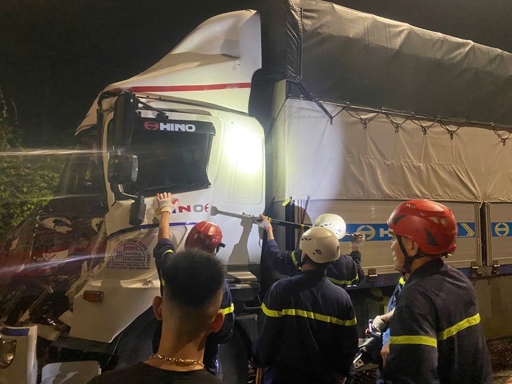 Kịp thời giải cứu tài xế bị mắc kẹt trong cabin