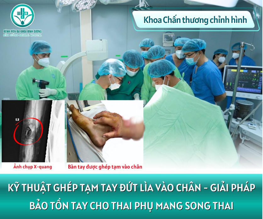 Ca mổ kéo dài liên tục 3 giờ, trong suốt quá trình phẫu thuật – các bác sĩ vừa thực hiện nối mạch để ghép tạm bàn tay vào chân, vừa theo dõi sát tình trạng thai nhi để đảm bảo không xảy ra biến chứng nào ngoài ý muốn. Kết quả bước đầu rất khả quan: tình trạng sản phụ ổn định, song thai phát triển bình thường và bàn tay được bảo tồn đang tiến triển tốt.