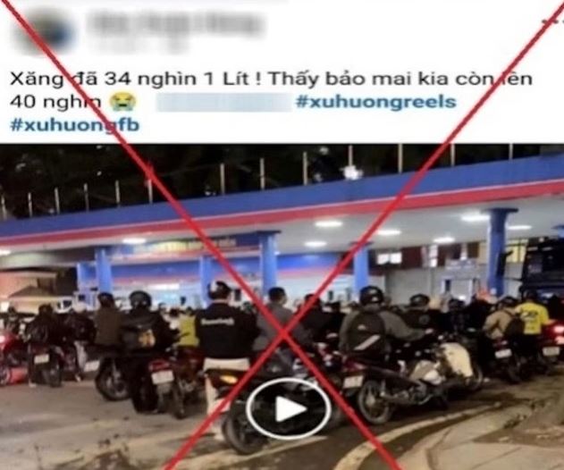 Bài đăng còn kèm theo hình ảnh người dân xếp hàng dài tại một cây xăng cùng các từ khóa “xu hướng facebook”, khiến thông tin nhanh chóng lan truyền và gây hiểu nhầm trong dư luận.