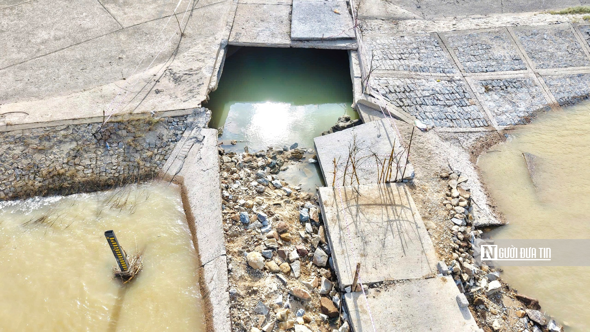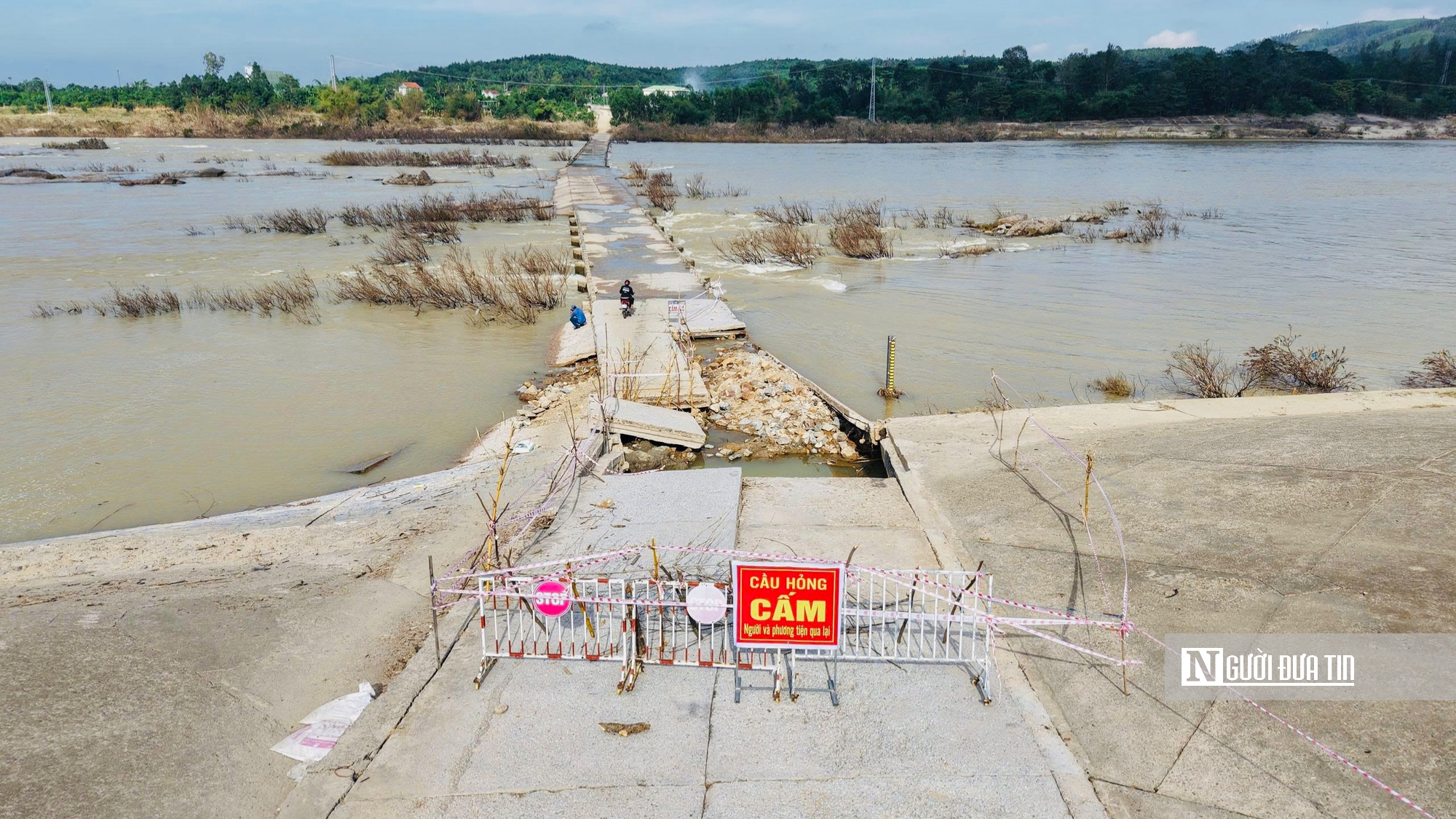 Theo ghi nhận của PV, điểm sập tạo ra một khoảng đứt gãy dài khoảng 12m, rộng hơn 3,5m. Toàn bộ phần mố và nhịp cầu bị lũ cuốn trôi, nhiều mảng bê tông vỡ vụn, chân mố bị xoáy sâu làm rỗng, taluy hai bên bị khoét hàm ếch, nền đường xói lở nặng. Hệ thống kè bảo vệ cũng không còn nguyên vẹn, nhiều tấm bê tông mặt công trình bị cuốn phăng theo nước lớn.