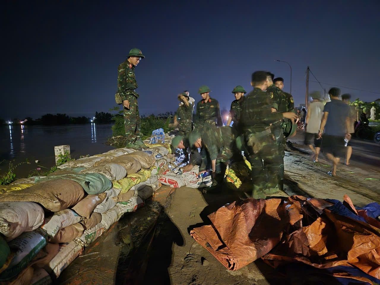 Trước tình huống cấp bách, cán bộ, chiến sĩ Lữ đoàn Pháo binh 675 (Bộ Tư lệnh Pháo binh) đã có mặt kịp thời cùng Nhân dân, công an, dân quân tự vệ tập trung gia cố, tôn cao mặt đê.