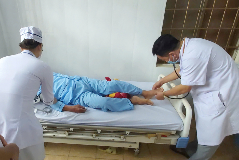 Đến sáng nay (9/10), bệnh nhân tỉnh táo, tiếp xúc tốt, sinh hiệu ổn định nhưng bàn chân trái vẫn sưng nề, vết rắn cắn bầm tím, nên phải tiếp tục theo dõi toàn trạng để điều trị tại khoa Nội tổng hợp Trung tâm Y tế Sơn Hòa.