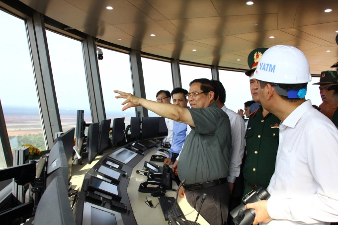 Thủ tướng kiểm tra Trạm kiểm soát không lưu Sân bay Long Thành chiều 14/12. Ảnh: Phước Tuấn