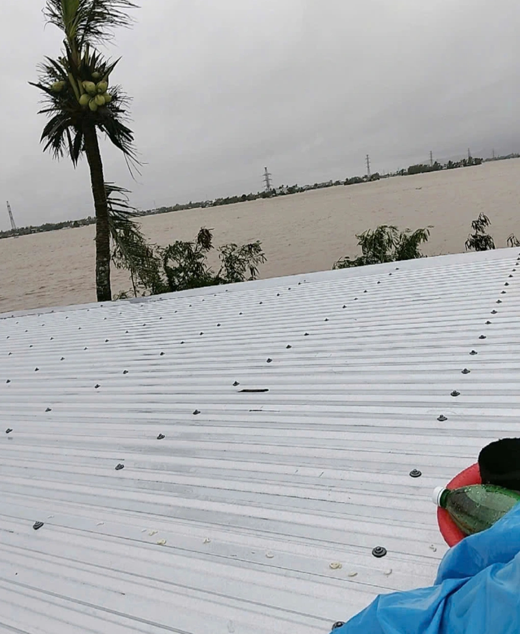 Trời tối nhanh, mưa lớn liên tục. Chỉ trong chốc lát, căn nhà chìm trong nước. Ba mẹ con chị co ro trên mái tôn, hoàn toàn bị cô lập. Không điện, không người qua lại, chị và hai con ngồi chờ trong đêm tối, đồng thời lên mạng tìm cứu hộ.