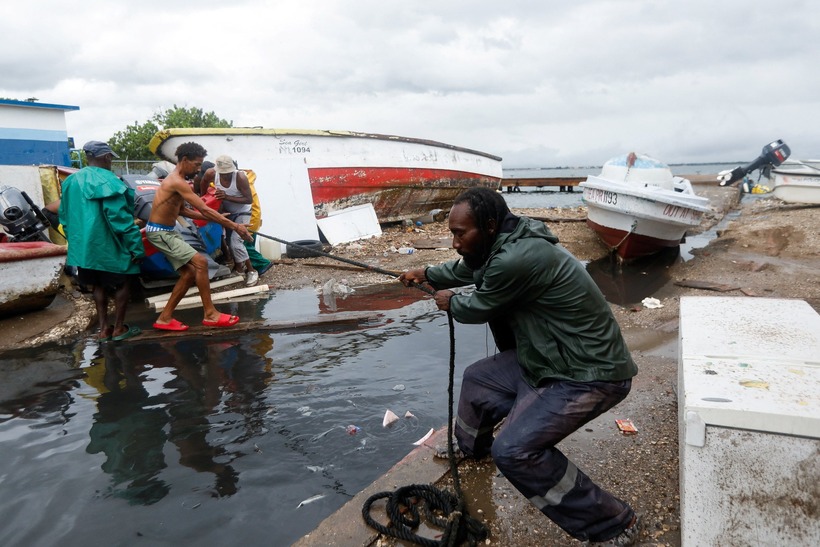Người dân Jamaica đưa tàu thuyền vào nơi tránh bão. Ảnh: Reuters