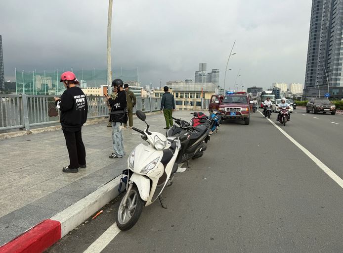 Đến sáng 3/11, người dân đi qua cầu Thủ Thiêm 1 (hướng từ quận Bình Thạnh cũ sang phường An Khánh) phát hiện một chiếc xe máy và đôi dép được cho là của nam sinh để lại.
