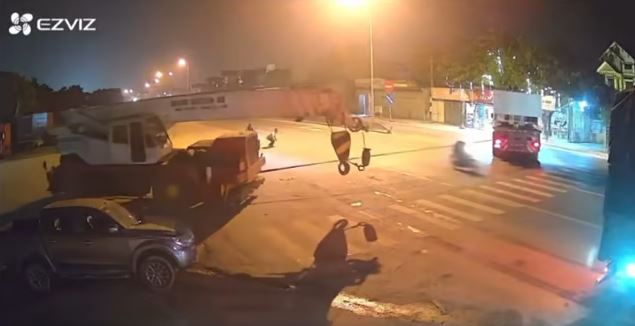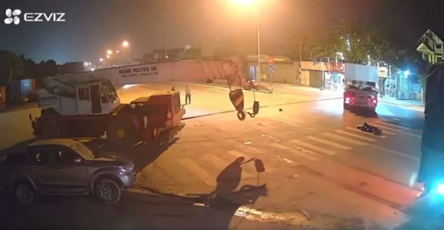 Tuy nhiên, một nam thanh niên điều khiển xe máy đi phía sau không nhận ra sợi dây cáp căng ngang giữa hai xe cẩu, dẫn đến va phải dây cáp và ngã mạnh xuống mặt đường. Cú va chạm khiến nạn nhân tử vong ngay tại chỗ.