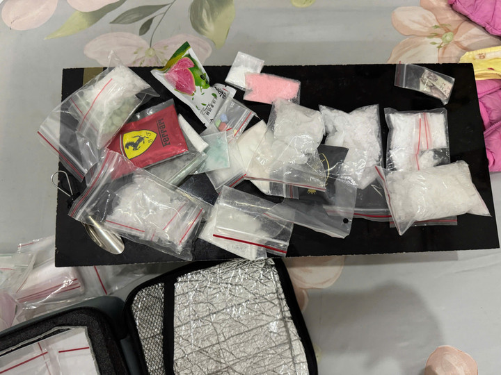 Bên trong vali này, có một vali nhỏ hơn, chứa nhiều túi nilon đựng tinh thể màu trắng, bột màu cam, viên nén và nhiều cân tiểu ly. Kết quả giám định của cơ quan chức năng cho thấy, các chất đựng trong chiếc vali là ma túy, loại ketamine và methamphetamine, tổng trọng lượng gần 2,73kg.
