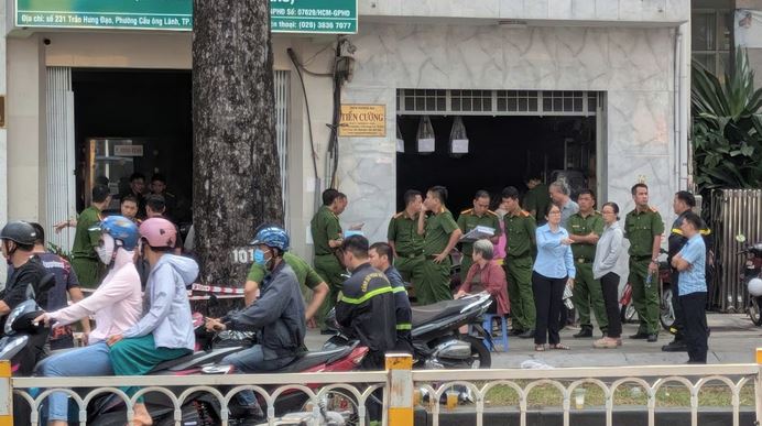 Đến hơn 10h30 cùng ngày, lực lượng Công an TP.HCM và Công an phường Cầu Ông Lãnh vẫn tiếp tục phong tỏa ngôi nhà 4 tầng – nơi xảy ra hỏa hoạn để khám nghiệm, điều tra. Giao thông khu vực bị ùn lại khi nhiều người dân dừng xem, ngóng tin.