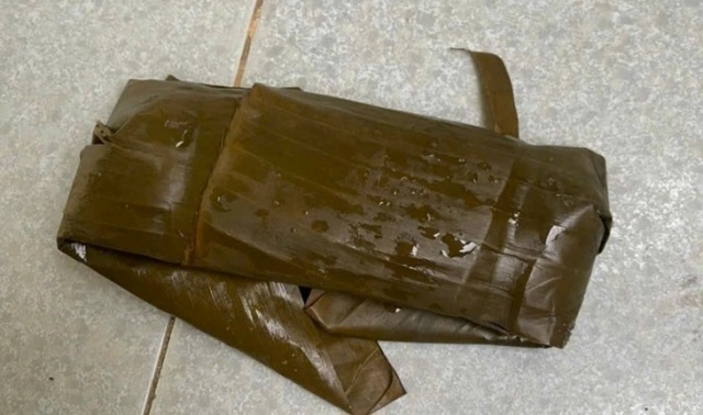 Bánh tày, loại bánh bằng gạo nếp gói lá chuối, được nhà trường cho học sinh ăn sáng trước khi có các triệu chứng ngộ độc. Ảnh: QUỐC NAM