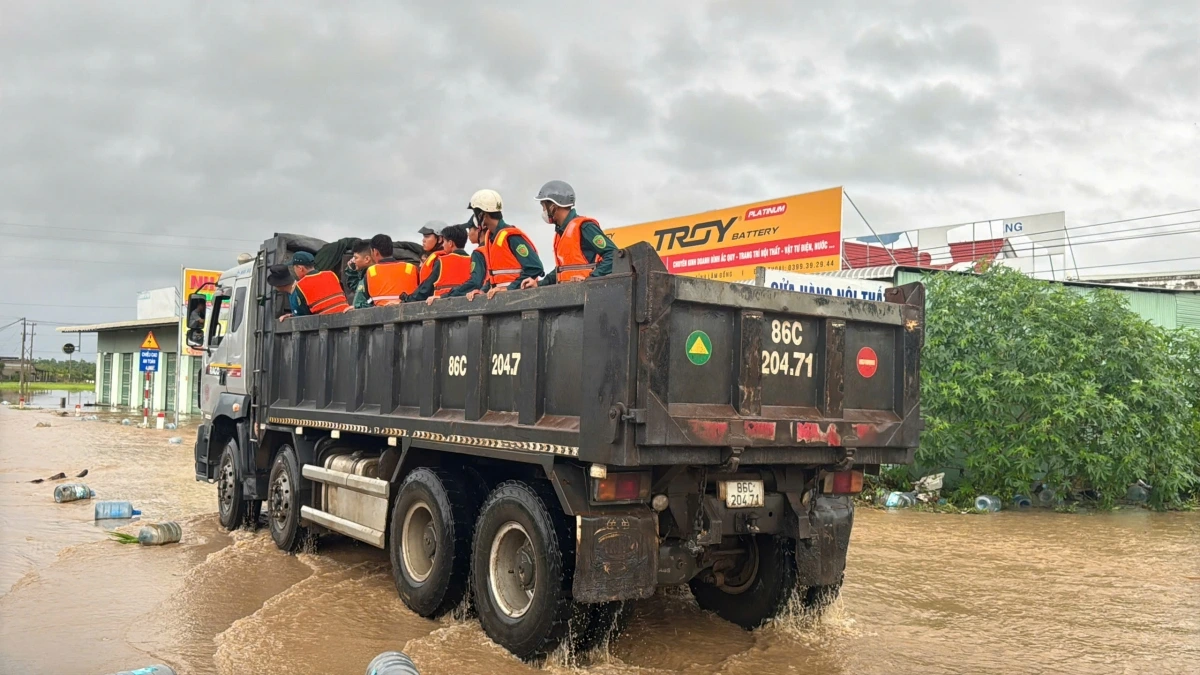 Nước lũ cũng làm ngập sâu nhiều khu dân cư ở xã Liên Hương, tỉnh Lâm Đồng (trước đây là xã Phước Thể, huyện Tuy Phong, tỉnh Bình Thuận). Hiện lực lượng chức năng đang tổ chức cứu hộ, đưa người dân vùng bị ngập sâu về nơi an toàn.