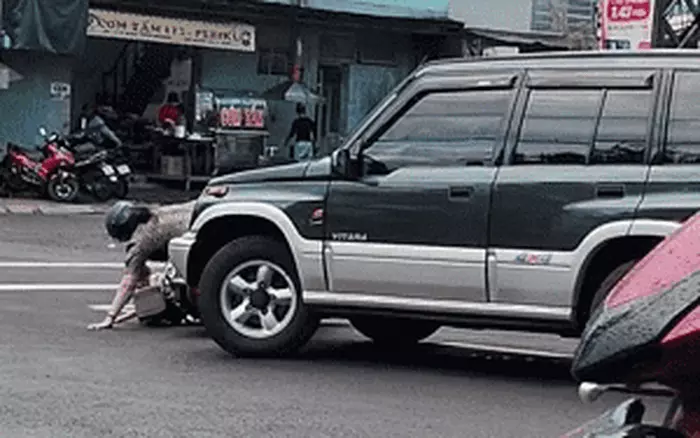 Lúc này, tài xế ô tô nhấn ga, tông vào phần đuôi xe máy khiến người phụ nữ cùng đứa trẻ ngồi phía sau xe ngã ra đường. Người phụ nữ vội đứng dậy bế con nhỏ lên kiểm tra thương tích. Sau khi xảy ra sự việc, tài xế ô tô đã lái xe rời khỏi hiện trường trước sự bức xúc của nhiều người. Sự việc xảy ra vào khoảng 16 giờ 45 phút ngày 10/10.