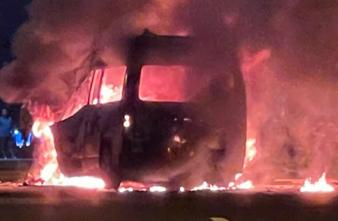 Sau tai nạn với ôtô đầu kéo tại đường dẫn vào trạm dừng cao tốc TP HCM – Dầu Giây, xe cứu thương bốc cháy, ba người mắc kẹt, tử vong, sáng 18/12