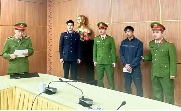 Nguyễn Ngọc Sơn tại cơ quan công an. Ảnh: Công an tỉnh Tuyên Quang