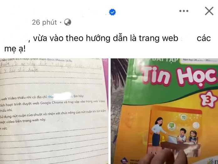 Một sự việc gây lo ngại vừa được ghi nhận khi một phụ huynh tại Quảng Ninh phát hiện đường link trong cuốn “Vở bài tập Tin học lớp 3” của con mình dẫn tới nội dung không phù hợp.