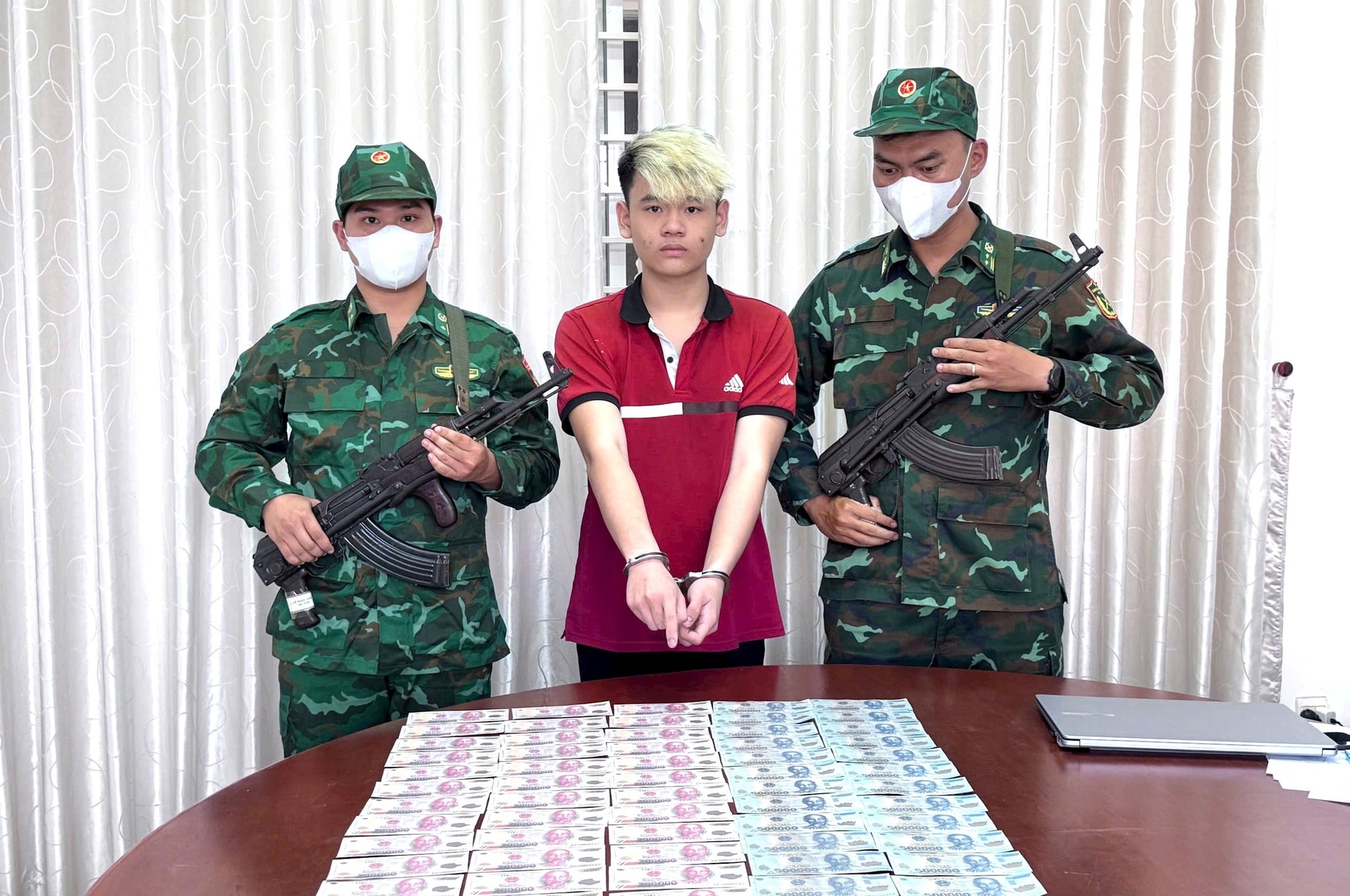 Trước đó, vào khoảng 14h30 ngày 8/2, tại khu vực trước một quán cà phê trên đường 965, tổ 13, khu phố Song Vĩnh, phường Tân Phước (TP.HCM), tổ công tác của Phòng Nghiệp vụ thuộc Ban Chỉ huy Bộ đội Biên phòng TP.HCM phối hợp với Đoàn Đặc nhiệm phòng chống ma túy và tội phạm miền Nam, Đồn Biên phòng Long Sơn, Phòng An ninh điều tra PA09 và Công an phường Tân Phước đã phát hiện, bắt quả tang Phan Ngọc Bảo Phúc (SN 2010, trú tại khu phố Bến Đình, phường Phú Mỹ) khi đang tàng trữ tiền Việt Nam giả.