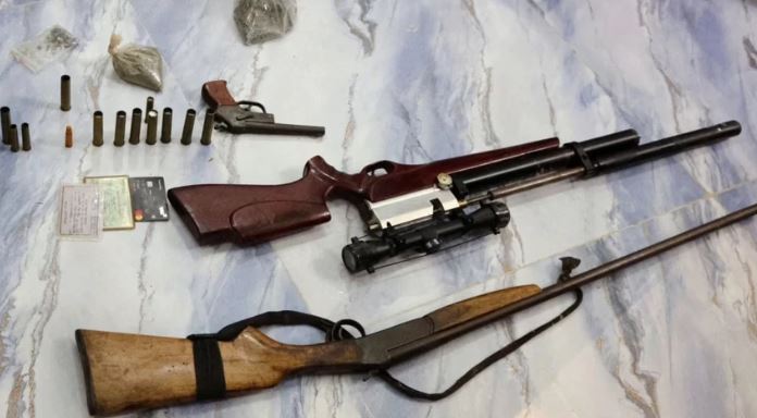 Thu giữ tang súng quân dụng, đạn găm bi và thuốc súng. Ảnh: CACC
