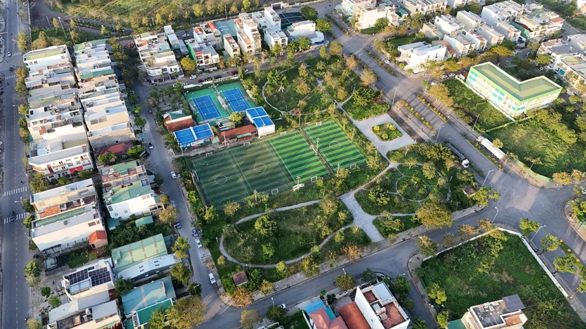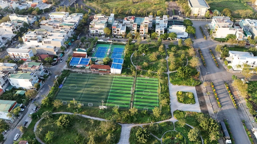 Tại khu đất công viên có nhiều công trình kinh doanh sai quy hoạch như sân bóng đá, sân tenis, sân pickleball.