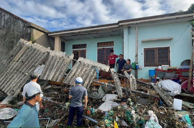 Ảnh hưởng bão số 13 Kalmaegi kết hợp triều cường dâng cao kỷ lục khiến hàng trăm căn nhà ở Quảng Ngãi bị hư hỏng.