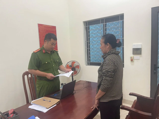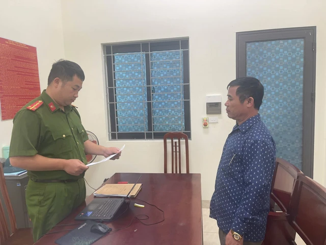 Công an xã tống đạt Quyết định khởi tố vụ án,khởi tố bị can các đối tượng trong vụ án (Ảnh: Công an Hưng Yên).