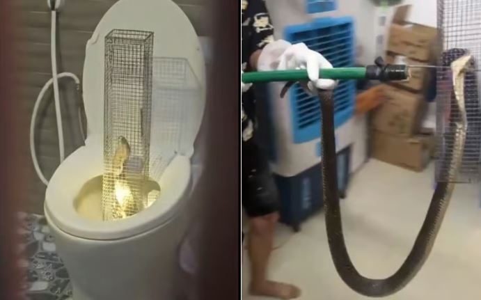 Đoạn video 7 giây ghi lại khoảnh khắc con rắn hổ mang lấp ló trong lồng bẫy đặt ở bồn cầu thu hút hơn 500.000 lượt xem trên mạng xã hội TikTok chỉ sau vài ngày đăng tải.