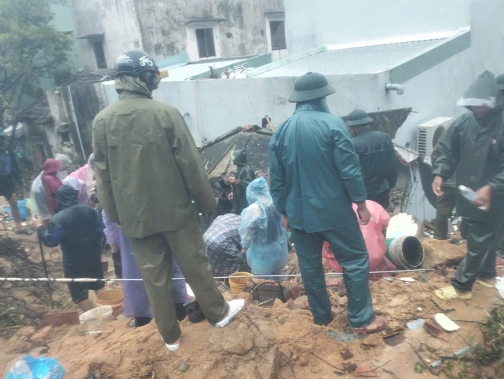 Chính quyền phường Quy Nhơn đã huy động toàn bộ lực lượng tại chỗ ở khu Hải Minh, phối hợp cùng các đơn vị quân đội khẩn trương đào bới tìm kiếm người mất tích.