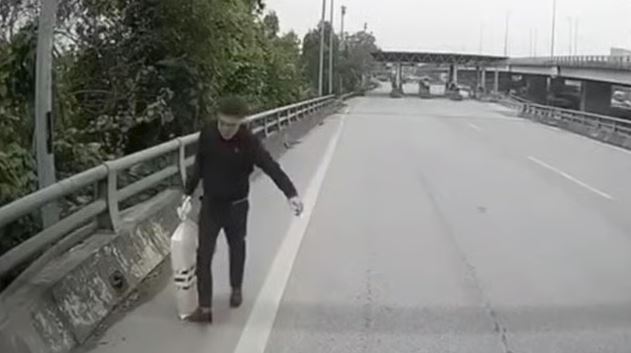Sau đó, do đang lưu thông trên cao tốc nên chị Vân không thể dừng xe ngay mà phải tấp vào làn khẩn cấp để kiểm tra. Khi hỏi thăm các phương tiện đi qua, một tài xế xe tải cho biết có người đi xe màu đen vừa nhặt bao tải.