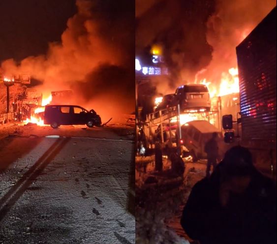 Do ngọn lửa bùng phát mạnh, ít nhất 17 phương tiện đã bị cháy rụi hoàn toàn. Dù đã sang nửa đêm, lực lượng cứu hỏa vẫn tiếp tục công tác dập lửa. Tuy nhiên, mặt đường bị đóng băng nghiêm trọng khiến việc tiếp cận hiện trường và cứu nạn trở nên đặc biệt nguy hiểm. Các lực lượng chức năng hiện vẫn đang khẩn trương xử lý hậu quả và điều tra chi tiết nguyên nhân vụ tai nạn.