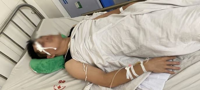 Hình ảnh tài xế P.T.V. và trang phục khi mới nhập viện
