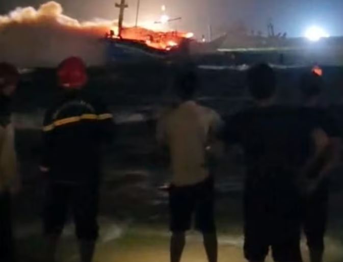 Theo thông tin ban đầu, khoảng 21h30 ngày 11/4, người dân địa phương phát hiện tàu cá mang số hiệu QNg-55376TS có chiều dài gần 15m, công suất 450CV khi đang neo đậu tại vùng biển thôn Phước Thiện, xã Vạn Tường bị bốc cháy dữ dội.