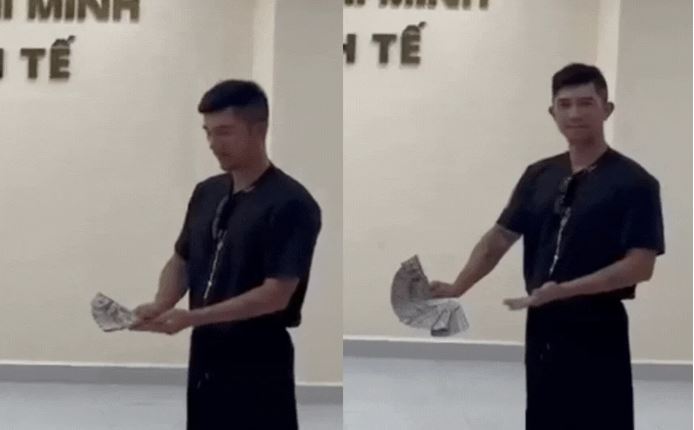 Trong đoạn video ghi lại thời điểm Lương Bằng Quang được cơ quan chức năng yêu cầu chụp ảnh lại cùng vật chứng là 80 sổ đỏ cùng một số tiền mặt, có thể thấy thái độ của người này khá bình thản, thậm chí tươi tỉnh nhếch khoé miệng.