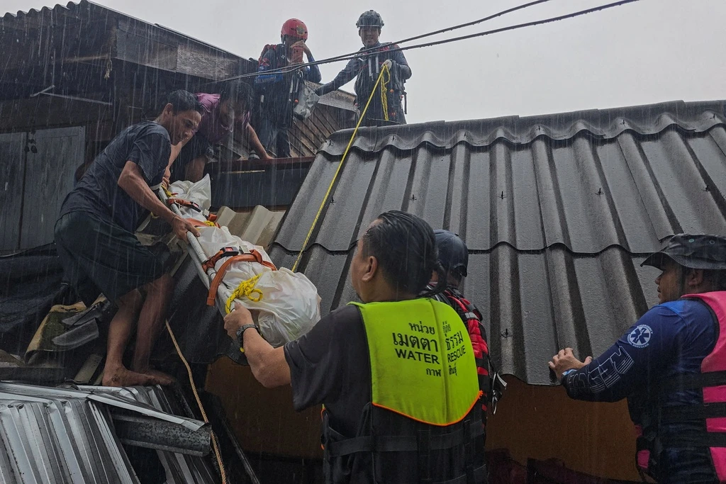 Lực lượng cứu hộ người dân tại thành phố Hat Yai. Ảnh: Reuters.
