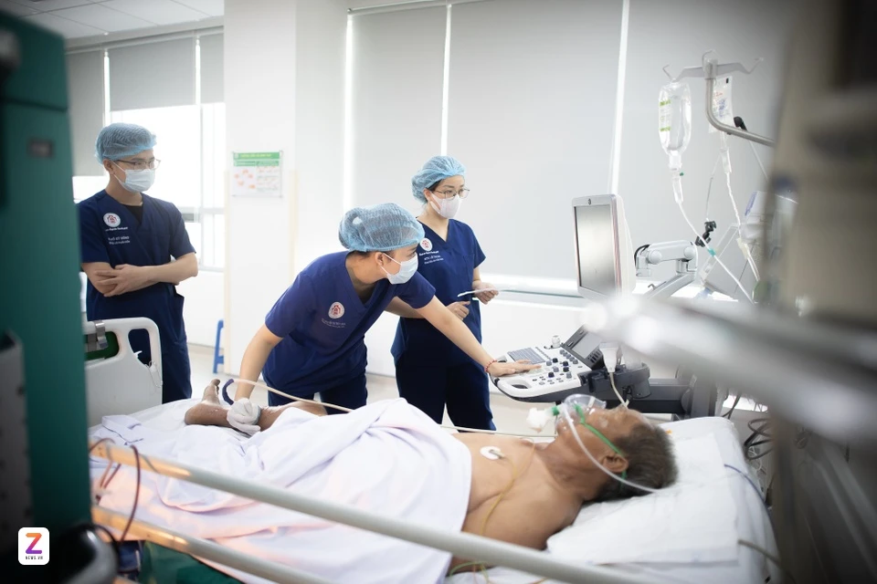 Bác sĩ Bệnh viện Trung ương Quân đội 108 cấp cứu cho bệnh nhân. Ảnh: Việt Linh.