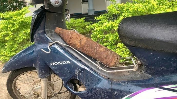 Thót tim cảnh người dân chở vật nghi đạn pháo 105mm bằng xe máy đến trụ sở công an