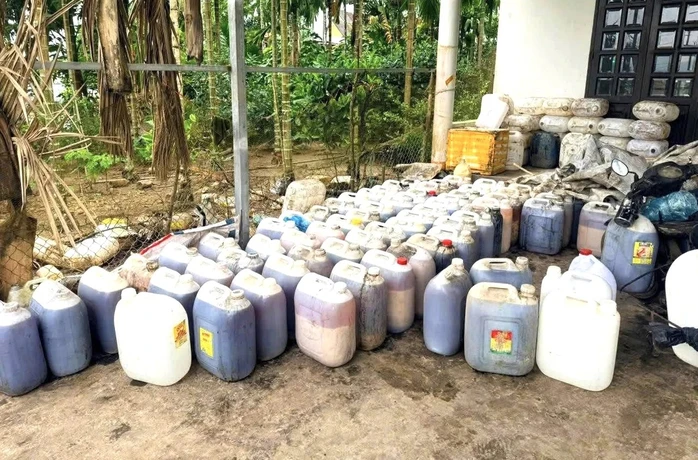 Cụ thể, lực lượng chức năng phát hiện 1,57 tấn dầu ăn đã qua sử dụng, mỡ heo đã qua sử dụng khoảng 0,39 tấn (15 can), nhớt đã qua sử dụng là chất thải nguy hại khoảng 1 tạ (4 can). Ngoài ra còn có nhiều can nhựa rỗng và dụng cụ phục vụ việc sang chiết, cân đo.
