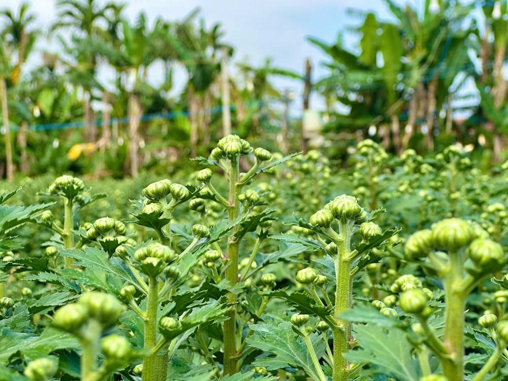 Những chậu cúc xanh lá, căng nụ được thương lái đặt mua từ sớm