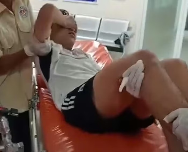 Hình ảnh nam sinh thời điểm được đưa vào bệnh viện Bà Rịa. Ảnh cắt từ clip