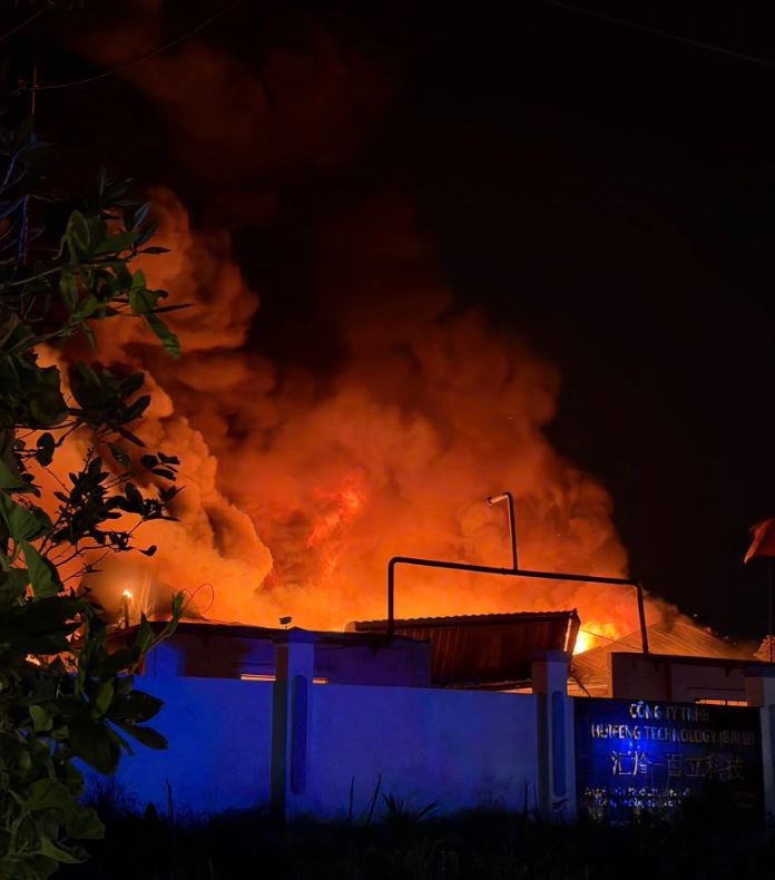 Tại hiện trường vào tối muộn, lửa đỏ rực vẫn bao trùm khu vực công ty, khói đen đặc quánh bốc cao lên bầu trời. Sự việc thu hút rất đông người dân hiếu kỳ tập trung theo dõi, buộc lực lượng chức năng phải tổ chức túc trực để đảm bảo an ninh trật tự và phân luồng giao thông.
