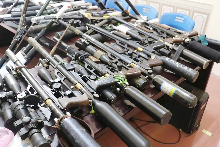 Tang vật thu giữ: 64 khẩu súng quân dụng, 28.720 viên đạn thuộc danh mục vũ khí quân dụng, 24 khẩu súng là công cụ hỗ trợ, 1.260 viên đạn bi và đạn cao su; 2 laptop, 42 điện thoại di động và các đồ vật khác có liên quan.