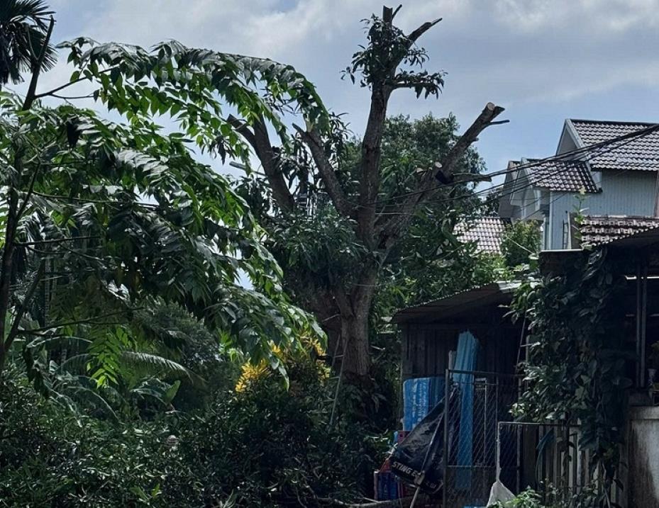 Trời đang nắng, người dân Quảng Ngãi vẫn khẩn trương chằng mái, tỉa cây ứng phó bão số 13