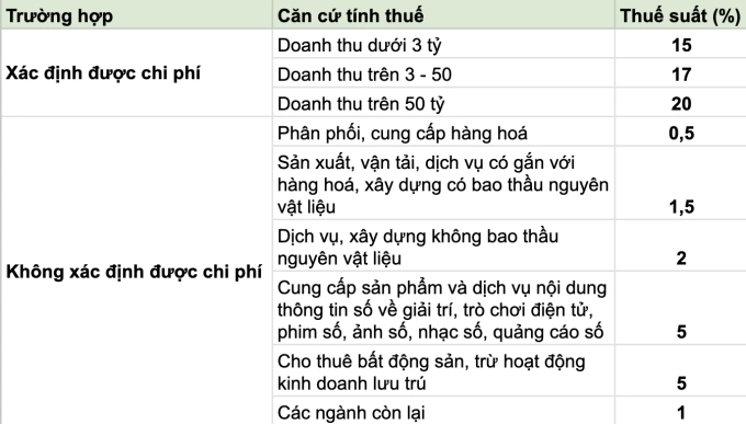 Luật cũng bổ sung cách tính thuế trên lợi nhuận (chênh lệch doanh thu và chi phí) với các hộ kinh doanh. Cụ thể, hộ có doanh thu dưới 3 tỷ đồng một năm nếu xác định được chi phí đầu vào sẽ chịu thuế suất 15% trên phần lãi. Mức này tương ứng ưu đãi thuế suất thu nhập doanh nghiệp của công ty siêu nhỏ có doanh thu tương đương.