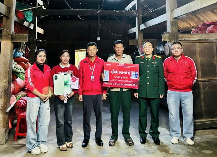 Viettel Lào Cai trao thưởng cho ông Triệu Tá Lý ngày 21/11/2025. Ảnh Gia đình Việt Nam