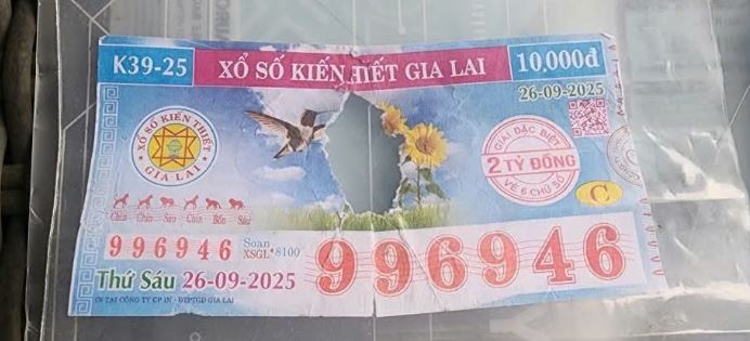 Ngày 1-10, ông L. đã viết đơn xin được nhận thưởng gửi Văn phòng Đại diện Công ty XSKT Gia Lai tại tỉnh Quảng Ngãi. Tờ vé số 996946C bị rách rời, tạo lỗ thủng ở giữa và phần rách rời không còn.